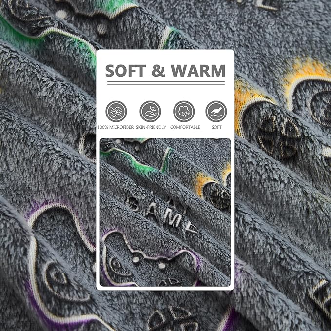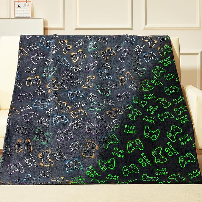 - Perfect Gift for Teens & Boys:The RRKTP Glow in The Dark Gaming Blanket is a great gift option for teens and boys, enhancing gaming room decor with its captivating luminous glow to spark imagination and fun.