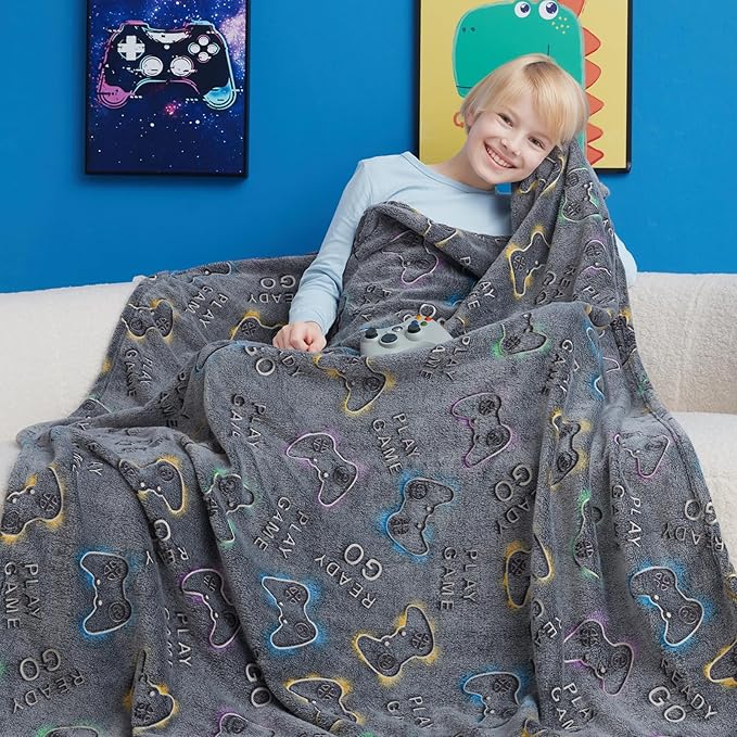 Gamer Game Controller Gifts Toys for Boys,Glow in The Dark Gaming Blanket,Christmas Birthday Presents Decor for Kids Age 3-14 Year Old Son Teen Child Toddler Soft Luminous Kid Blanket 50"x60"