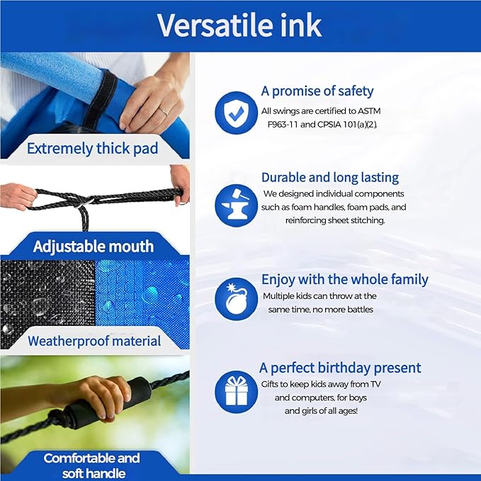 - Effortless Assembly For Family Fun: With the included hanging kit and adjustable ropes, you can set up this outdoor swing for kids in minutes on a swing set, tree, pergola, or playground, enhancing your family's outdoor experiences