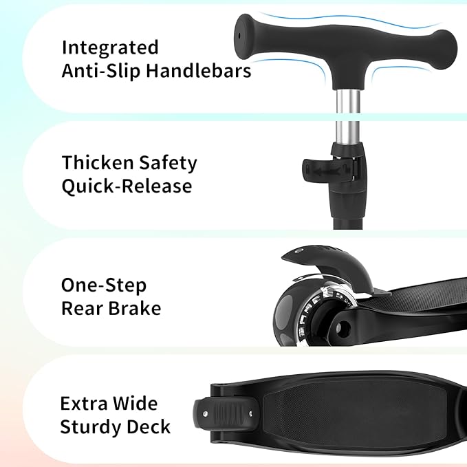 - Turn and Stop with Ease: This 3-wheel scooter features a tilt steering system that helps children steer confidently by utilizing their body’s center of gravity. Designed for safety, it improves balance and coordination while featuring a strong rear-wheel braking system for quick stops. Beginners can easily master this scooter, reducing the risk of falls and promoting adventure.