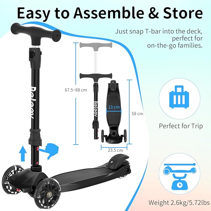 - Grow with Your Kids: Discover the perfect scooter for children ages 3 to 12! This 3-wheel scooter features adjustable handlebars with 5 height settings, ranging from 67.5 to 88 cm, ensuring maximum comfort as your child grows. Capable of supporting up to 110 pounds, it’s perfect for school rides and weekend fun. Give the gift of joy and watch them thrive on their new favorite ride!