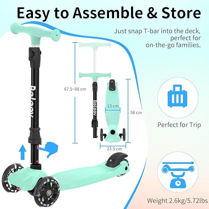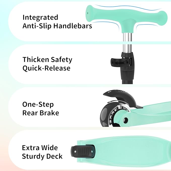 - Turn and Stop with Ease: This 3-wheel scooter features a tilt steering system that helps children steer confidently by utilizing their body’s center of gravity. Designed for safety, it improves balance and coordination while featuring a strong rear-wheel braking system for quick stops. Beginners can easily master this scooter, reducing the risk of falls and promoting adventure.