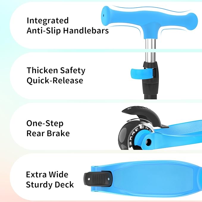 - Turn and Stop with Ease: This 3-wheel scooter features a tilt steering system that helps children steer confidently by utilizing their body’s center of gravity. Designed for safety, it improves balance and coordination while featuring a strong rear-wheel braking system for quick stops. Beginners can easily master this scooter, reducing the risk of falls and promoting adventure.