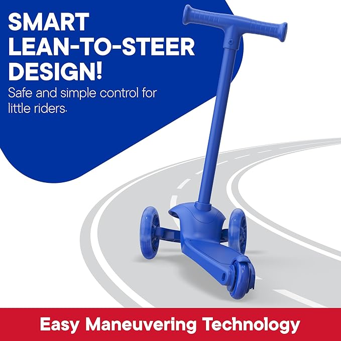 - Lean-to-Steer – With a lean-to-steer system and a fixed T-bar handle, this scooter helps toddlers stay balanced while riding. By leaning the handlebar to turn instead of twisting, kids enjoy smooth control, safer steering, and a more confident experience.