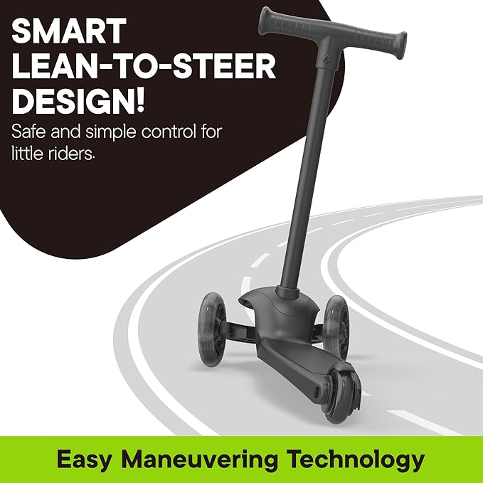 - Lean-to-Steer – With a lean-to-steer system and a fixed T-bar handle, this scooter helps toddlers stay balanced while riding. By leaning the handlebar to turn instead of twisting, kids enjoy smooth control, safer steering, and a more confident experience.