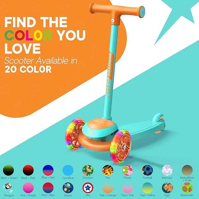 3 Wheel Scooter for Kids, Smooth Light Up LED Front Wheels, Wide Anti Slip Deck, Rear Foot Brake, Easy Lean to Steer Maneuvering, Indoor & Outdoor Ride On Toys for Ages 2 Up