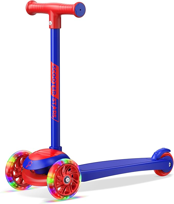 3 Wheel Scooter for Kids, Smooth Light Up LED Front Wheels, Wide Anti Slip Deck, Rear Foot Brake, Easy Lean to Steer Maneuvering, Indoor & Outdoor Ride On Toys for Ages 2 Up