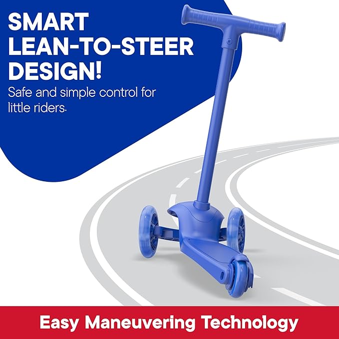 - Lean-to-Steer – With a lean-to-steer system and a fixed T-bar handle, this scooter helps toddlers stay balanced while riding. By leaning the handlebar to turn instead of twisting, kids enjoy smooth control, safer steering, and a more confident experience.