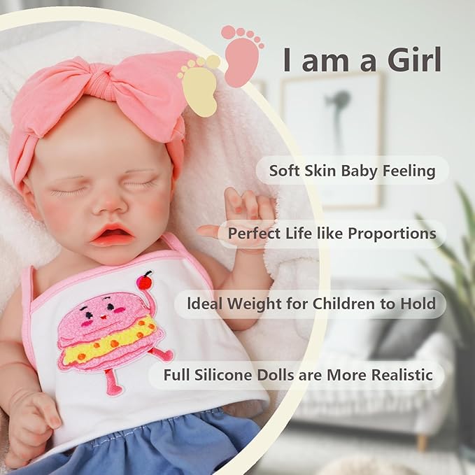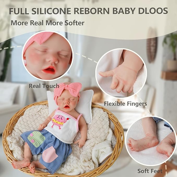 - 👶Full Silicone Baby Dolls: Compare to other reborn baby dolls, our all silicone baby dolls are meticulously handcrafted using high-quality silicone materials , with a soft and realistic texture, resembling a ' real ' baby.