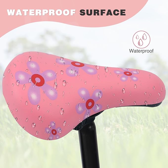- Beautiful Colors and Patterns: Pink saddle with some small purple flowers pattern, children will love it, making their bicycles more beautiful
