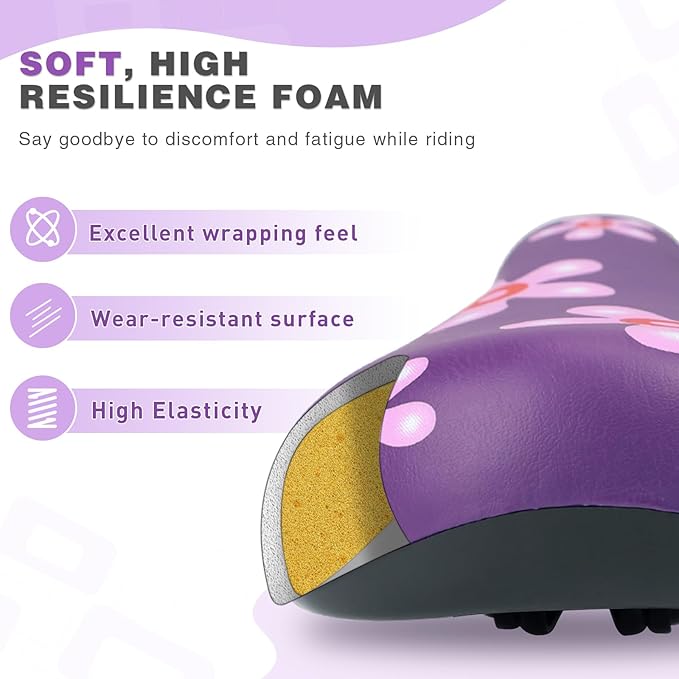 - Beautiful Colors and Patterns: purple saddle with purple flowers pattern, children will love it, making their bicycles more beautiful
