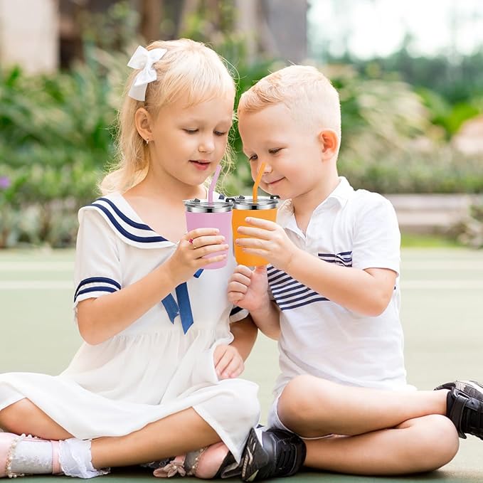 - 【Durable 18/8 Stainless Steel】Compare with broken glass and cheap plastic, each spill-proof kids tumbler is made of 18/8 stainless steel, and it can withstand multiple falls. It also has a polished outer surface, thick walls, and a sturdy base, protecting kids from hurt by sharp edges, and won't rust after a long time using. Ideal for getting your kids or partner to drink their water, juice, milk, smoothies, ice cream, ice coffee, and more.