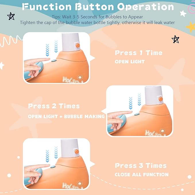 - The bubble bike machine is easy to start, just press the button on/off. 3 AA batteries required, batteries and bubble solution not included. An independent sealed bubble solution bottle inside to stop the solution from overflow. When the child rides, there are bubbles behind him, as if he is in a dreamy bubble world.