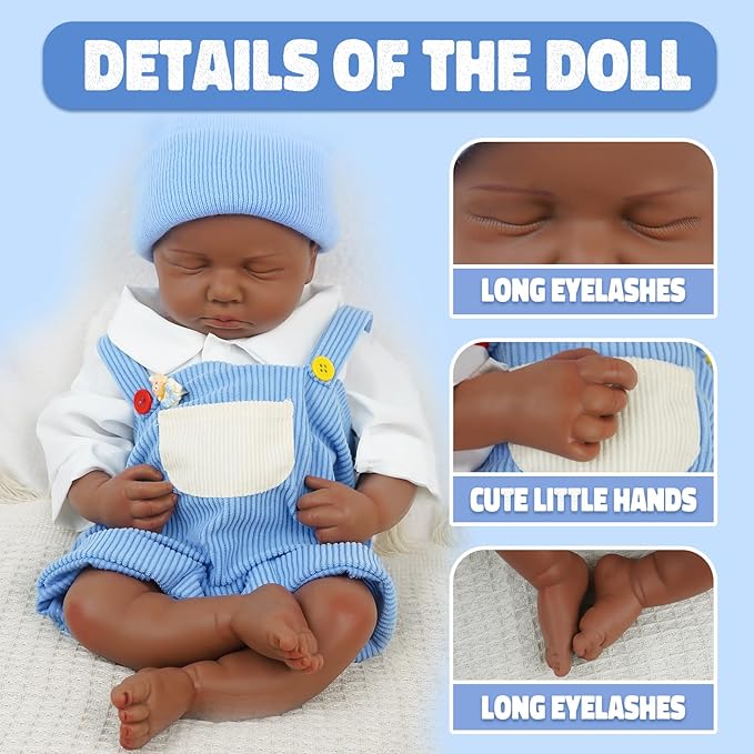 - 👶Realistic Baby Dolls: From a cute head to lifelike toes, this doll is full of warmth and adorability from head to toe, with sweet facial features, slender limbs, wrinkled fingers and toes, and a baby like weight. When you hold him, it feels like a real baby in your arms.