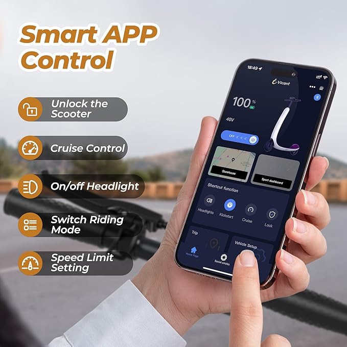 - Smart App Control: H7 electric scooter is equipped with an intelligent control system. It can realize locking, riding mode, lighting system, speed level, cruise control, start mode and scooter status display, etc. One-stop solution, comprehensive control, bringing more convenience to your riding