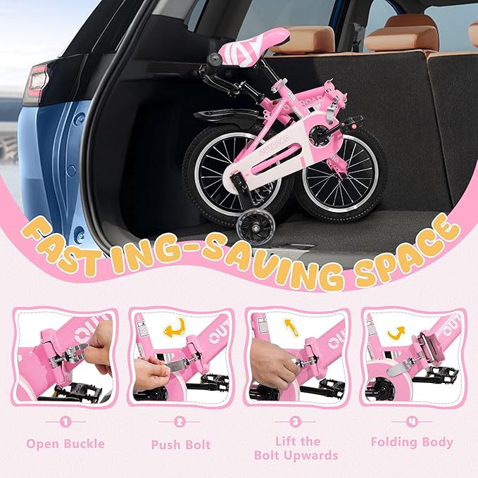 - 🚲 【DESIGN FOR KIDS】- This folding kids bike is made of high carbon steel frame, thickened tube and large particle anti-slip tires, it makes riding safer and more stable. Please adjust a suitable seat height and handlebar height according to the height of our child.