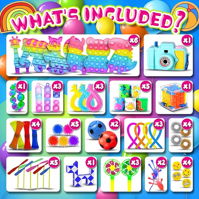 - 【Unique product design】Our party favros are uniquely designed. The products are taken from a variety of gadgets that children like. They are colorful and diverse. Each toy has its own unique design. Some are designed for decompression, some are designed for birthdays, some are designed for learning, and there are various usage scenarios.