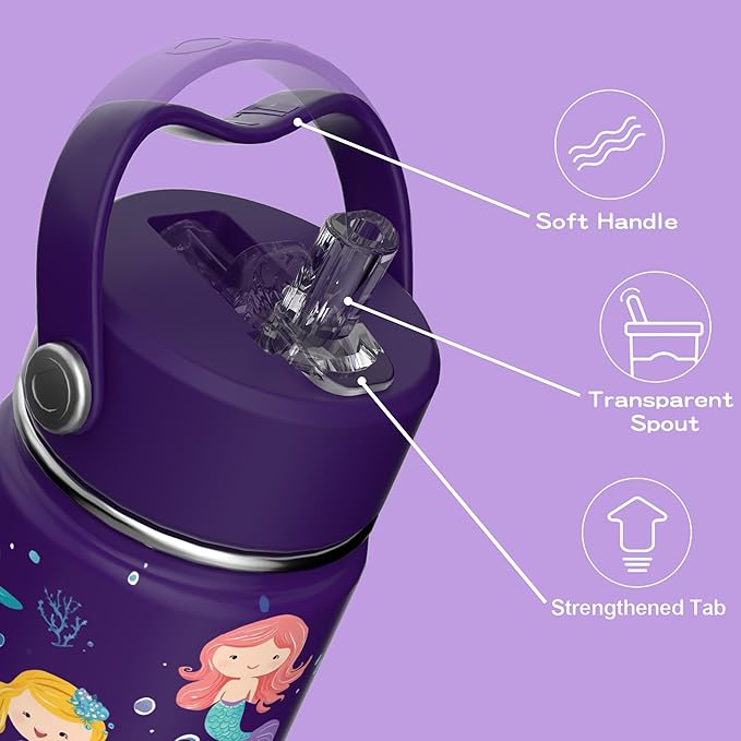 - 316 Surgical-Grade Stainless Steel: Safety is the priority when choosing products for our kids. We use the best-in-class materials for every part of our products. Our bottles are made with 316 Surgical-Grade stainless steel inside - a metal premium than 18/8 stainless steel in rust-free and purity. Our straw caps are BPA Free and Toxin-free so that every sip of water is healthy and fresh for our kids.