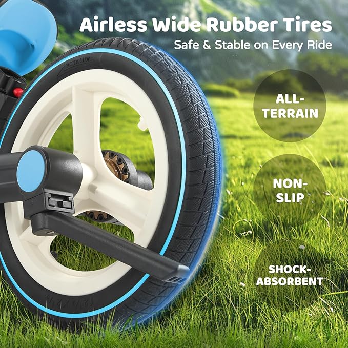 - 【Durable & Stable】Durable steel frame ensures the stability and safety of the kids bike. The high-quality all-terrain inflatable-free rubber wheels provide shock absorption, which is suitable for riding on various ground surfaces. In addition, the handbrake is designed for emergency braking or to prevent skidding, ensuring the safety of children