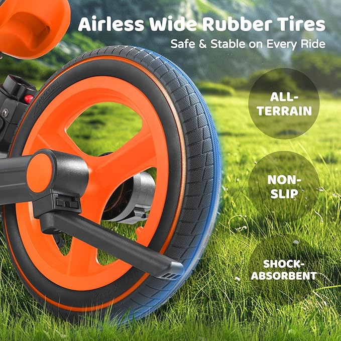 - 【Durable & Stable】Durable steel frame ensures the stability and safety of the kids bike. The high-quality all-terrain inflatable-free rubber wheels provide shock absorption, which is suitable for riding on various ground surfaces. In addition, the handbrake is designed for emergency braking or to prevent skidding, ensuring the safety of children