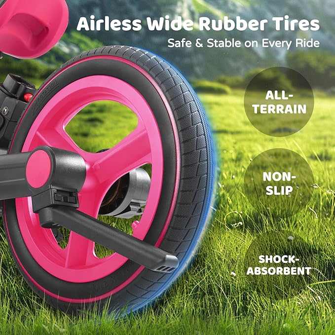 - 【Durable & Stable】Durable steel frame ensures the stability and safety of the kids bike. The high-quality all-terrain inflatable-free rubber wheels provide shock absorption, which is suitable for riding on various ground surfaces. In addition, the handbrake is designed for emergency braking or to prevent skidding, ensuring the safety of children
