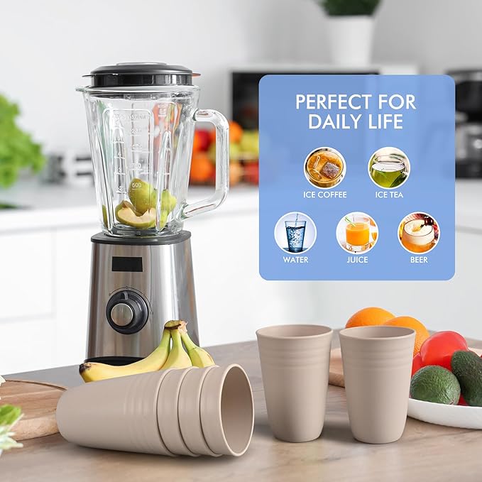 - 【Multicolor with15Oz Capacity】: Drinking Glasses Premium Wheat Straw Unbreakable Cups - Alternative to Plastic Cups Reusable Unbreakable Drinking Cup Dishwasher Safe Water Glasses Tumblers.