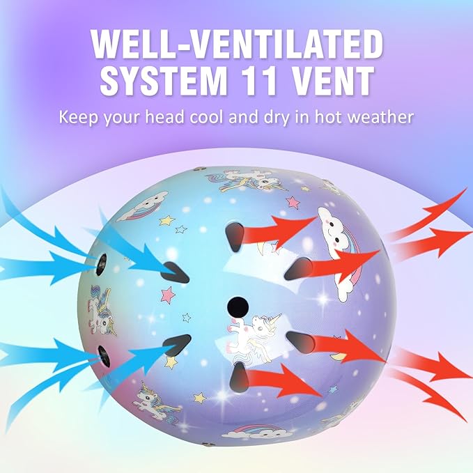 - Vibrant gradient colors and trendy patterns (unicorn,dinosaur,rainbow star,rocket blue,starry purple,dotty) make kids excited to wear their helmet!
