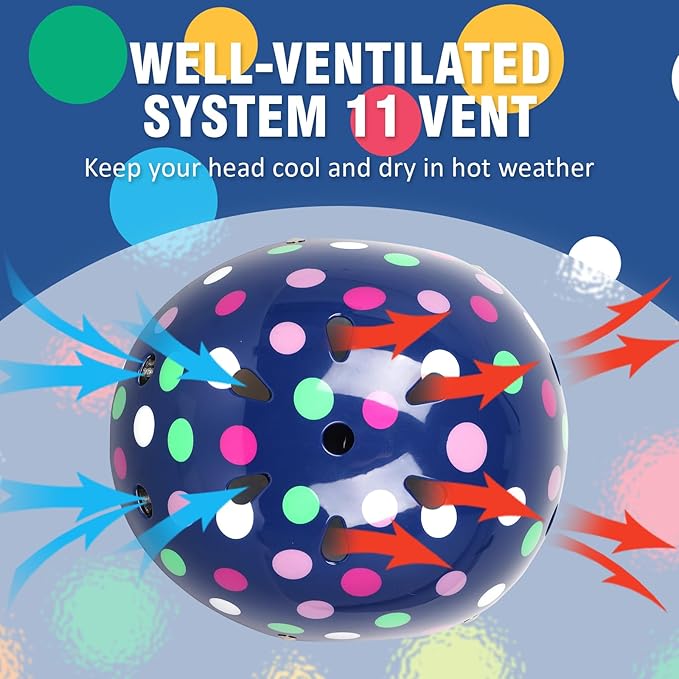 - The kids bike helmet designed with 11 air vents, can help reduce sweating and keep your kids head staying cool for fun when playing.