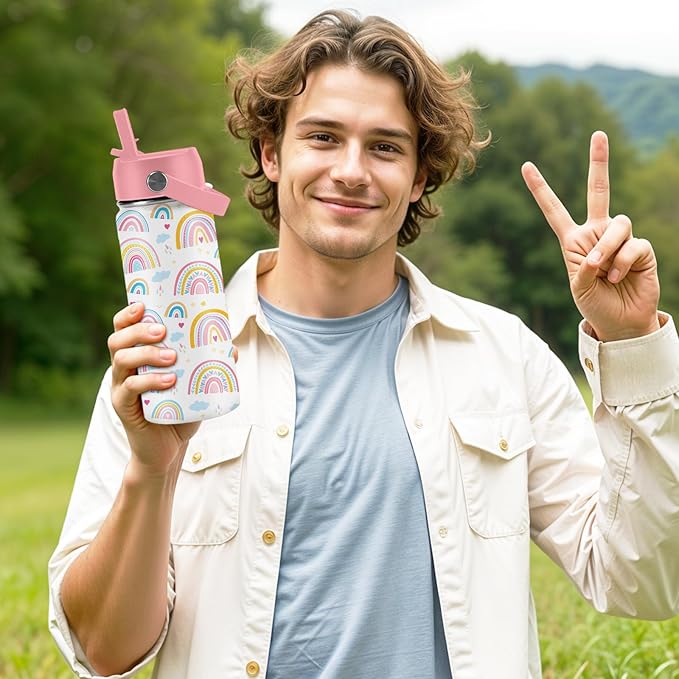 - ✅ 【Vibrant & Sturdy】 – Eye-catching rainbow design with fade-resistant print, perfect for adding fun to your daily hydration routine. Made with high-quality 304 stainless steel for long-lasting use