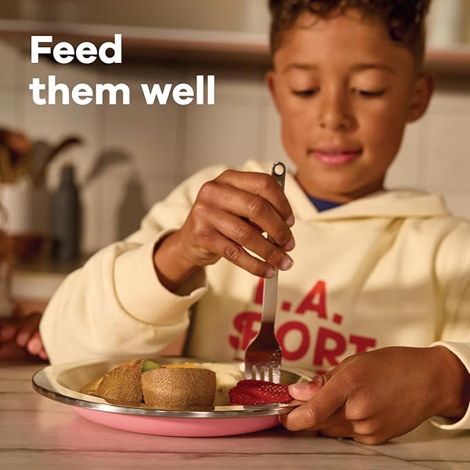 - EASY TO CLEAN: The Stainless Steel Kids Plate is dishwasher safe, and stays clean and colorful.