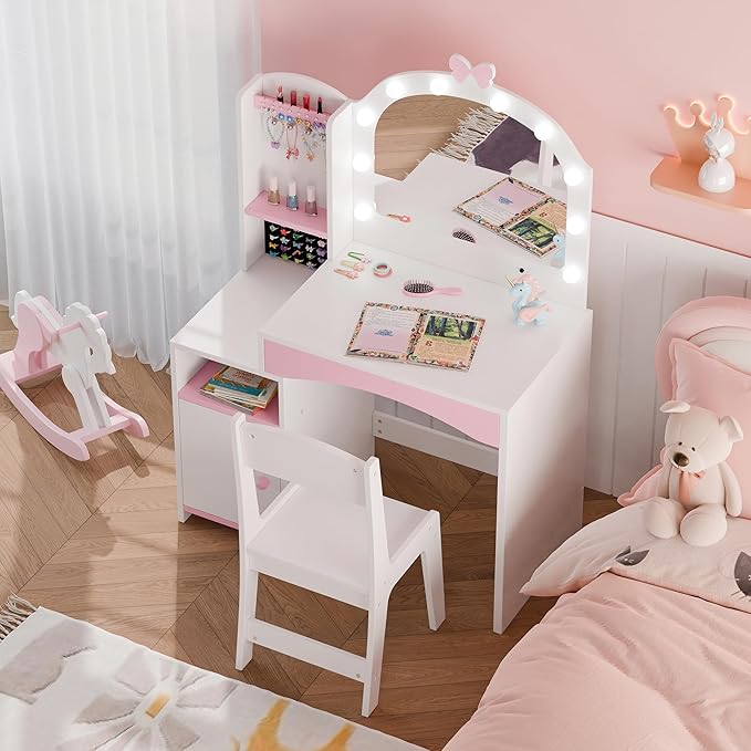 - Magical Gift for Little Girls: Available in soft pink or classic white with adorable bow pattern, this girls vanity set is a dream come true for any little princess. It makes a perfect gift for birthdays or holidays, sparking creativity and imaginative play.