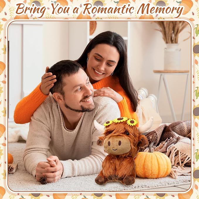 - Festival Design: unlike standard plush toys, our highland cow stuff animals features cute sunflower decorations that enhance its appeal for Fall and farm party; This unique design element makes it a standout gift for friends, family, or that special someone, ensuring that your present is both thoughtful and memorable