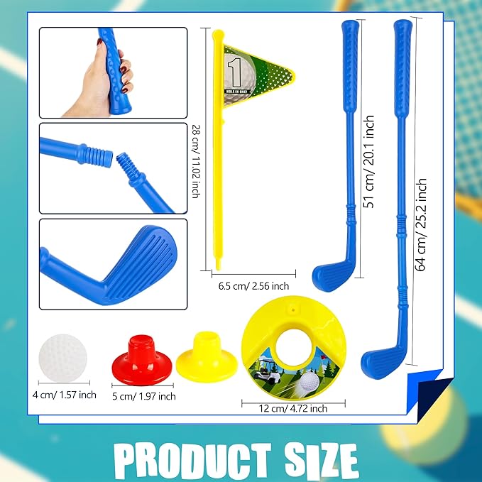 - 【Suitable Occasion】: the plastic golf ball set can be used in many scenarios such as family gatherings, school activities, party games, etc. Whether it is indoors or outdoors, it is suitable for playing in the backyard, lawn, or even in the house, children can enjoy the golf game anywhere