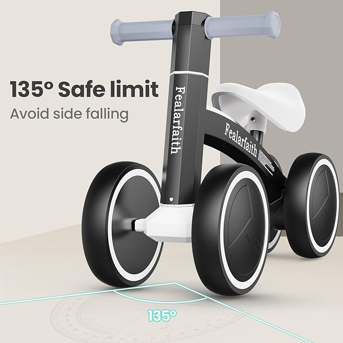 - SUPERIOR SAFETY FOR PEACE OF MIND: Your child's safety is everything. This balance bike for 1 year old toddlers has a fully enclosed wheel design to protect little feet and a 135° steering limit to prevent tipping. Constructed with 100% non-toxic, baby-safe materials, it ensures a secure and worry-free ride.