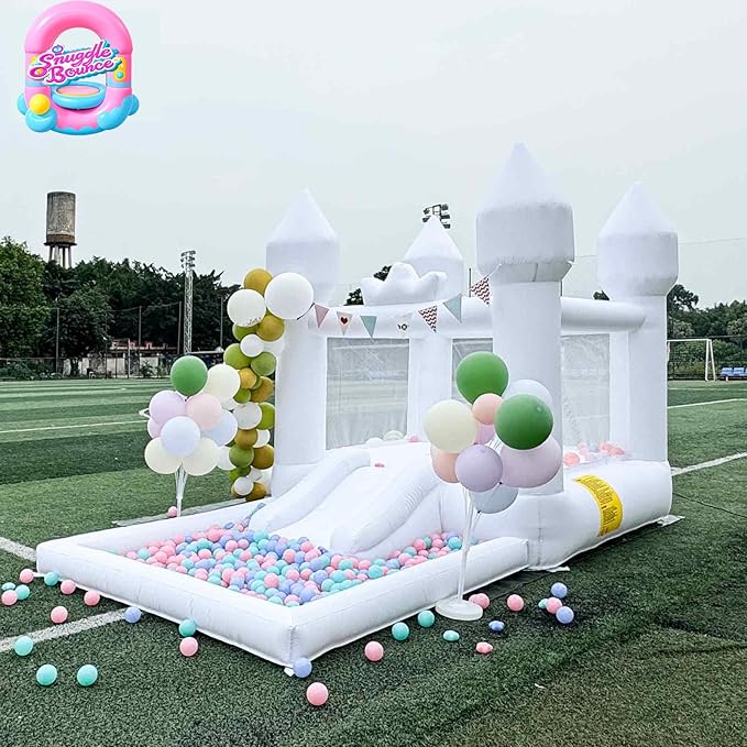 12.5FTx7.1FT White Inflatable Bounce House Inflatable Castle with Slide and Ball Pool Indoor and Outdoor Toys for Active Kids Used for Inflatable Products for Birthday Parties and Holiday Decorations