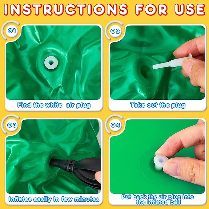 - What You Will Receive: package includes 4 pieces of hopper balls, with 4 solid colors, red, blue, green, yellow respectively, come with an air pump; Hopper balls may be a bit dirty because there is dust during packaging in the warehouse, absolutely brand new