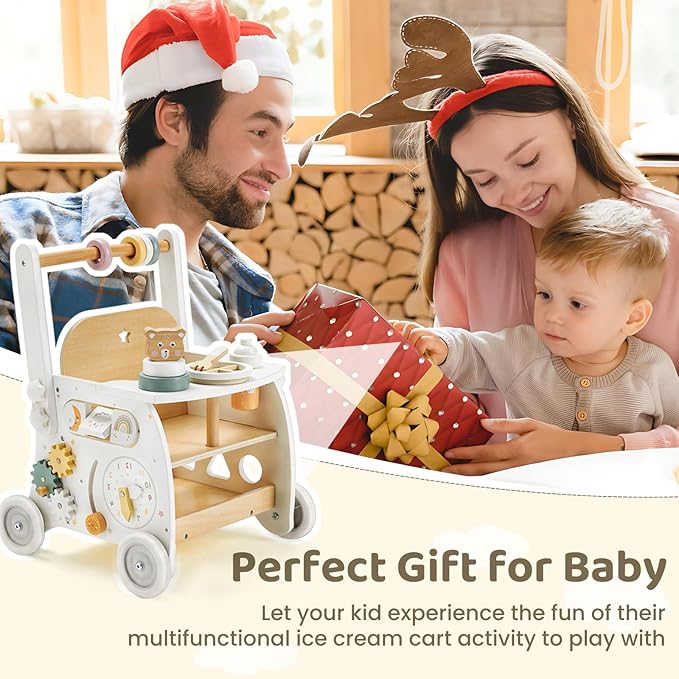 - Safe & Certified Material:Solid Wood and MDF (Medium Density Fiber) are used to make strong structure. All the Materials & Paints are strict to the Toys Safety Standards ASTM/CE in USA and EN71 CE in Europa. The Edges are Round Polished to Prevent Injury. Unique design makes the wooden baby walker a Nice Gift for Toddlers 18 Months and over Boys and Girls.