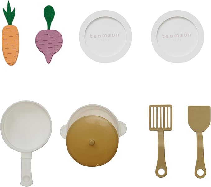 - ACCESSORIES INCLUDED: Comes with 1 pot, 1 pan, 1 lid, 2 spatulas, 2 veggies, and 2 plates.