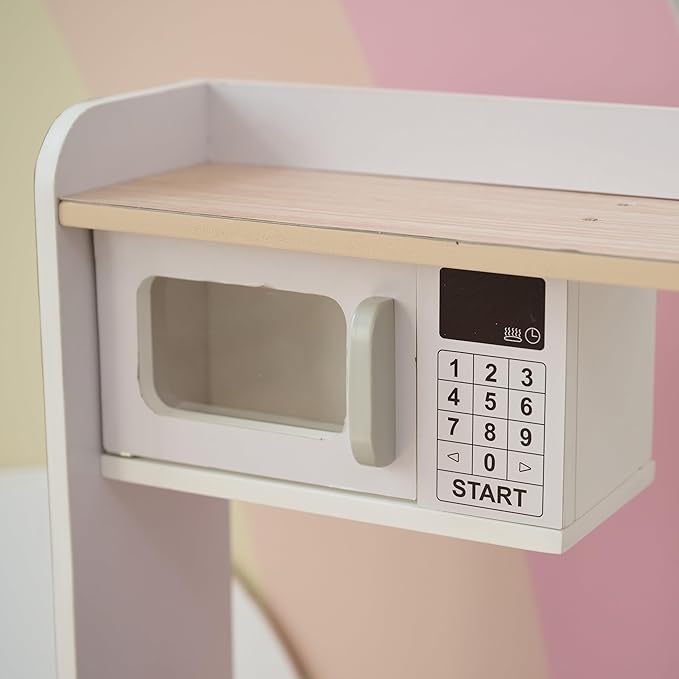 - ALL-IN-ONE KITCHEN SETUP: Includes a stove, microwave, oven, sink, washing machine, hooks, and a mini garden.