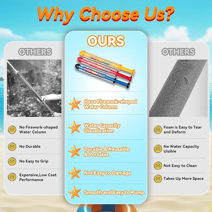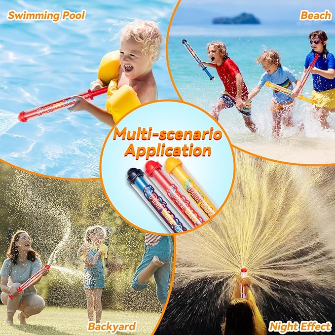 - Package Include: This water gun set includes 6 water guns in bright and fun colors like blue, yellow, and red.Perfect for birthday parties, summer games, school events, or family time.Give one to each friend or family member and enjoy fun water fights together