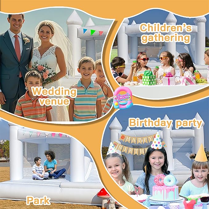 - 【Perfect Gift】Our white bounce house is perfect for children's activities, parks, amusement parks, corporate family day events, parties, promotions, and markets. It is the perfect gift for entertainment, decoration, and commercial photography. It can also be used as a commercial leasing project to generate rental income and other commercial benefits.
