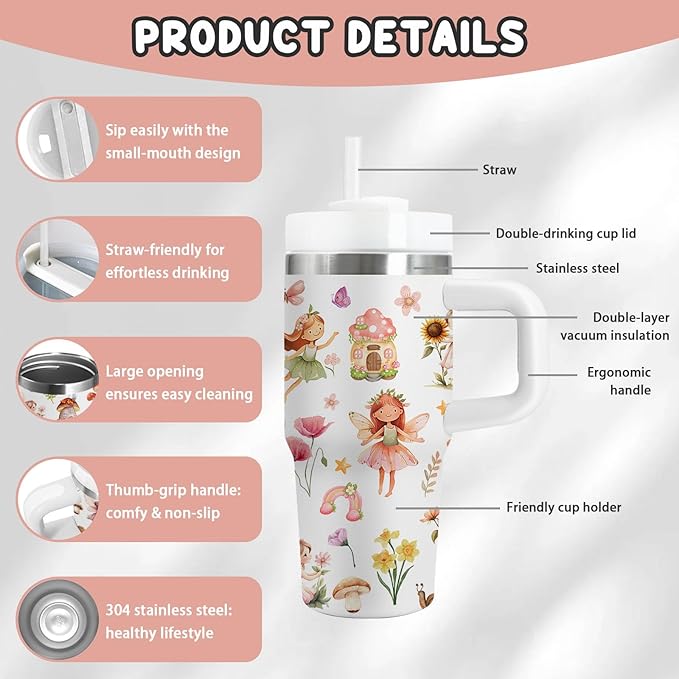 - 🧚♀️ Enchanting Fairy Design for Girls - This 14oz tumbler features a delightful fairy theme, perfect for little girls who love fantasy and whimsy. The vibrant colors and charming patterns make it a fun and stylish accessory for school, travel, or playtime