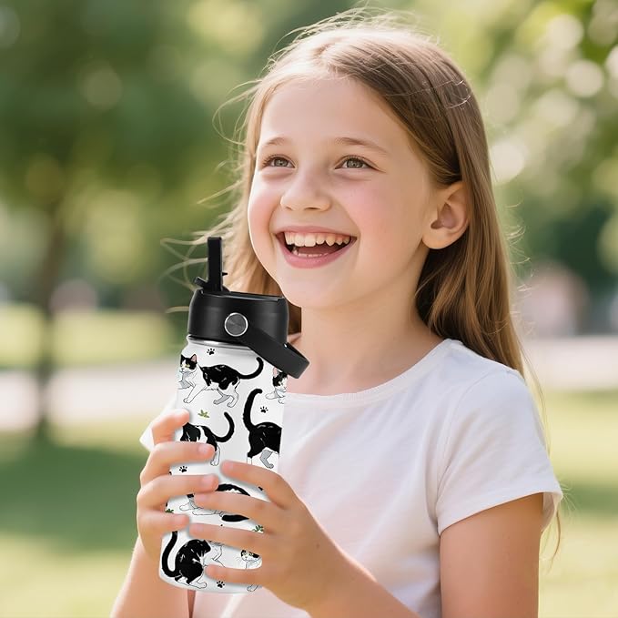 - 😻 Adorable Cat-Themed Graphics - Playful & Vibrant! Features cute and colorful cat designs with eco-friendly printing that won’t fade or peel. Perfect for little animal lovers—this charming bottle will delight kids who adore cats and make hydration fun