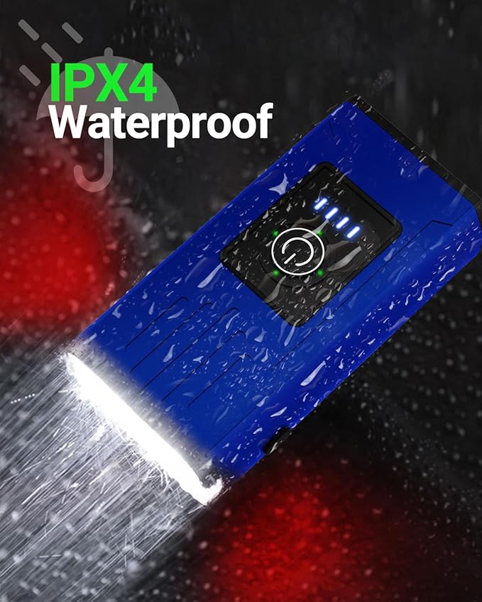 - [ SHOCKPROOF & WATERPROOF ] Made of aluminum alloy and meeting the standard of IPX4 Waterproof, our bike lights front and back are capable of fighting the toughest situations such as encountering heavy rain or riding on muddy roads, like your most loyal friends and guards.