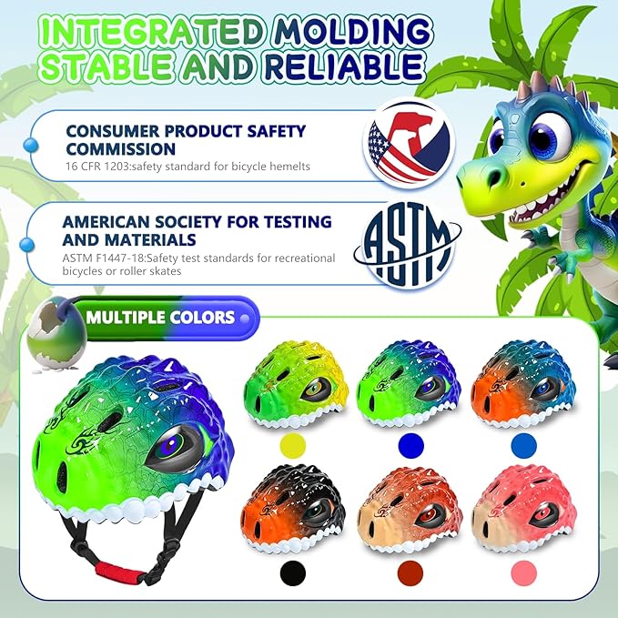 - 【7-IN-1 MULTIFUNCTIONAL PROTECTIVE GEAR SET】The toddler helmet set includes 1 3D Adjustable helmet, 2 knee pads, 2 elbow pads, 2 wrist pads, 1 bicycle bell, 1 helmet lining. The unique animal appearance of the helmet easily wins the love of children, and you no longer have to worry about your child not liking to wear a helmet.
