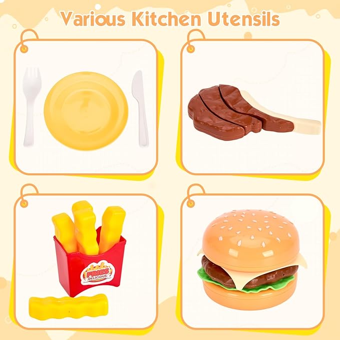 - Realistic Role-Play & Social Skills - From pots and pans (56Pcs) to play money (200Pcs), kids run cafes, grocery stores, or 5-star restaurants. Swap roles as chefs, customers, or cashiers. You bake the cake, I’ll count the dollars - teamwork makes the dream work! Mix veggies, fruits, and desserts to teach balanced meals. Order up! Today’s special: Plastic pizza with a side of giggles!