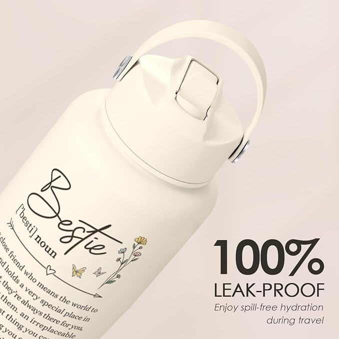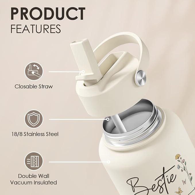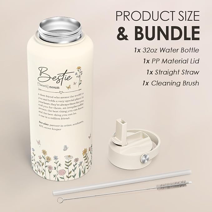 Best Friend Water Bottle 32oz Stainless Steel with Lid & Straw, Bestie Insulated Bottles for Women Girls Female Friends Sisters, Gifts Ideas for Birthday Christmas