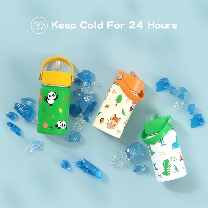OISIZ Kids Water Bottle with Straw Lid 10oz, Vacuum Insulated 316 Stainless Steel Water Bottles for Kids for School, Leakproof Water Bottle, BPA Free and Keep Cold for 24 Hours
