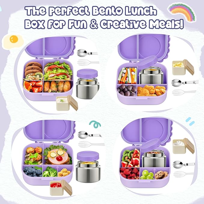 - 🦕"Feast Like a Hungry Herbivore with 4+1 Compartments & Treasure Thermo!Masterfully organize epic meals in this dinosaur lunch box: veggie 'rocks', berry 'prey', sandwich 'boulders', and dip 'lava'!The 12OZ thermo keeps soups steaming hot or yogurt icy cold for 6-8 hours.Includes a leak-proof sauce cup – ideal for kids** exploring flavors!"