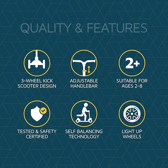 - LIGHT-UP WHEELS - These scooters doesn't just roll—it glows! The built-in multi-color LED lights in the wheels illuminate as your child rides, creating a rolling light show that enhances visibility and adds a huge dose of fun for indoor or outdoor play.